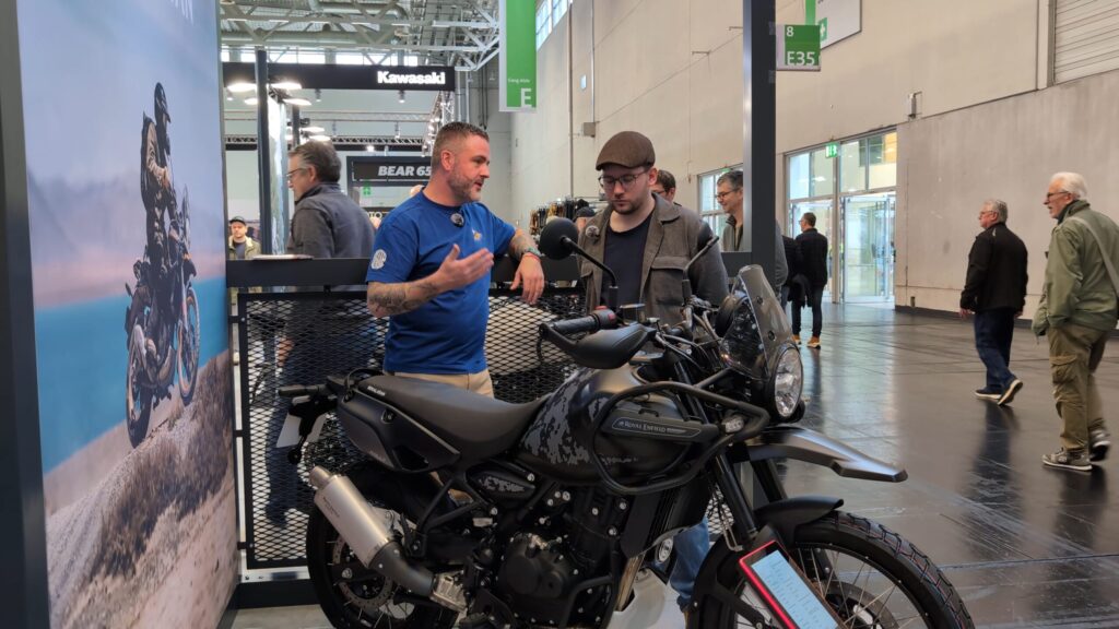 Laut Kai Petermann (l.) von Royal Enfield DACH soll die Mana Black vor allem ein etwas jüngeres abenteuerlustigeres Publikum ansprechen. (Foto: RERC)